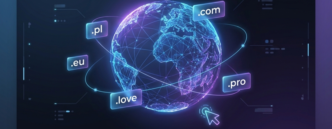 Rozszerzenie domeny (TLD): .pl, .com, .eu i nowe końcówki